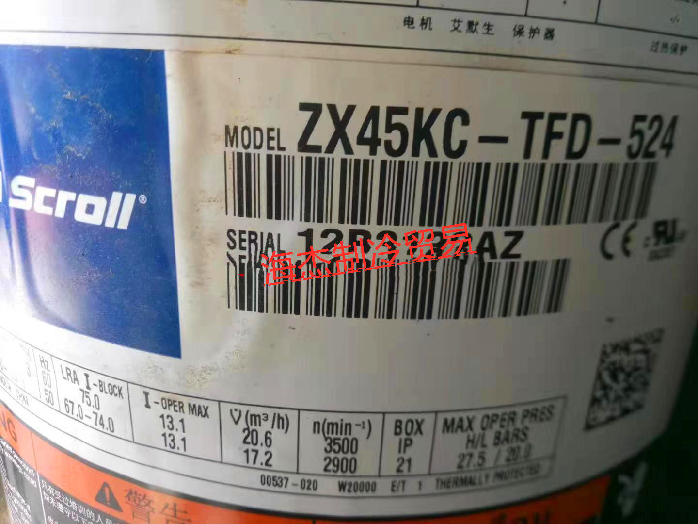 New original loading valley wheel low temperature refrigerated storage freezer compressor ZX45KC-TFD-524 ZX45KCE-TFD-524