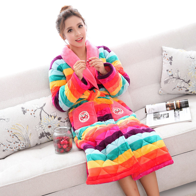 Sleeping Robes Women Autumn Winter Coral Suede Thickening Lengthened three layers clip Cotton pyjamas Home Clothing Flannel Warm Bathrobe-Taobao