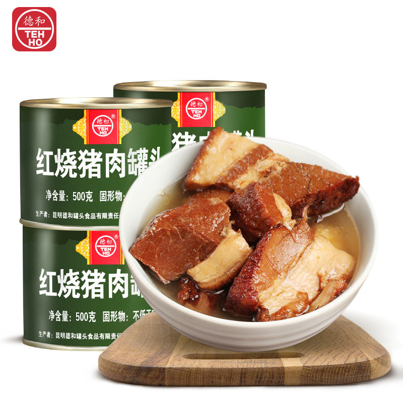 Ed & Red Burned Pork Canned 500 gr X4 Pot Yunnan Red Burning Meat Cooked Food Vacuum Heated Ready-to-eat Pork Canned