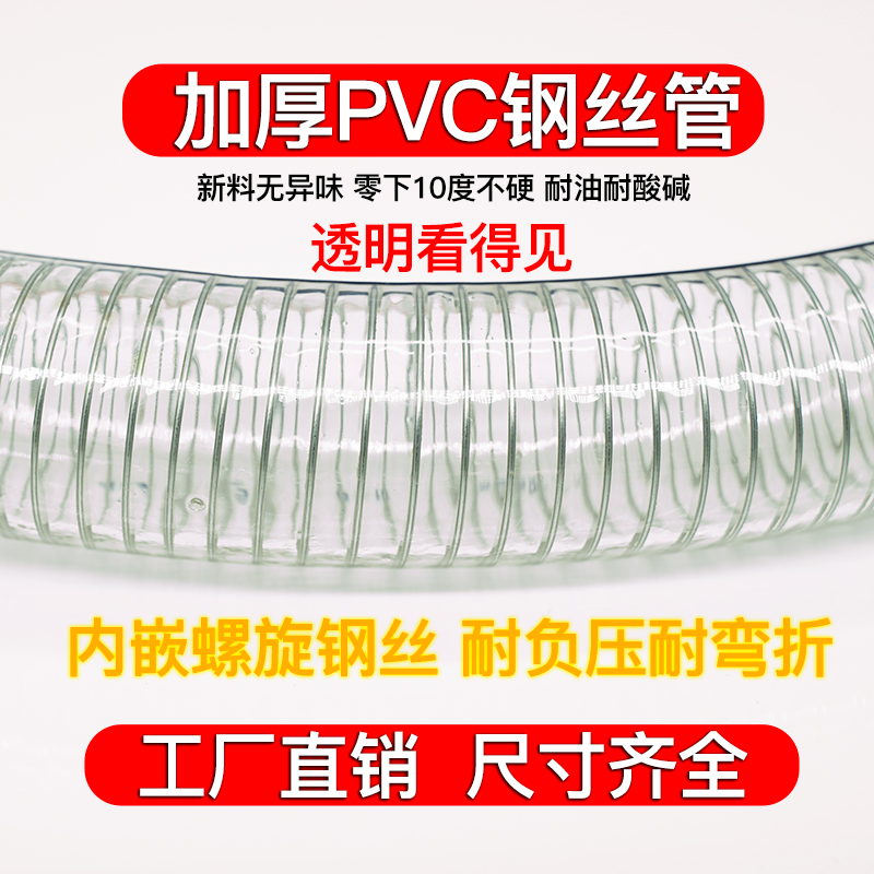 Steel wire pipe PVC transparent water pipe hose thickened high temperature resistant cold-resistant high-pressure 50 plastic oil pipe vacuum tube