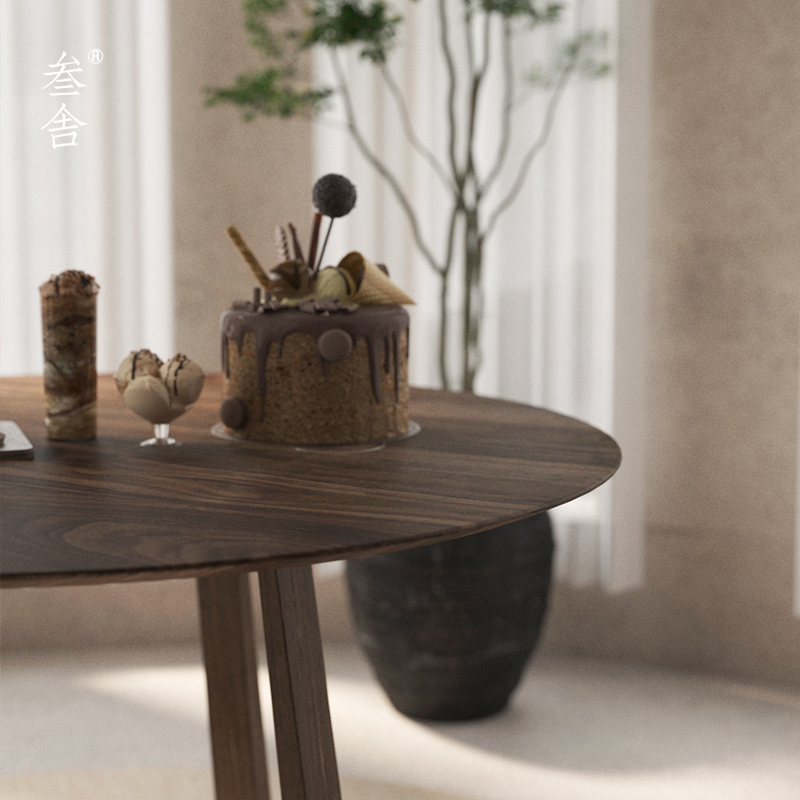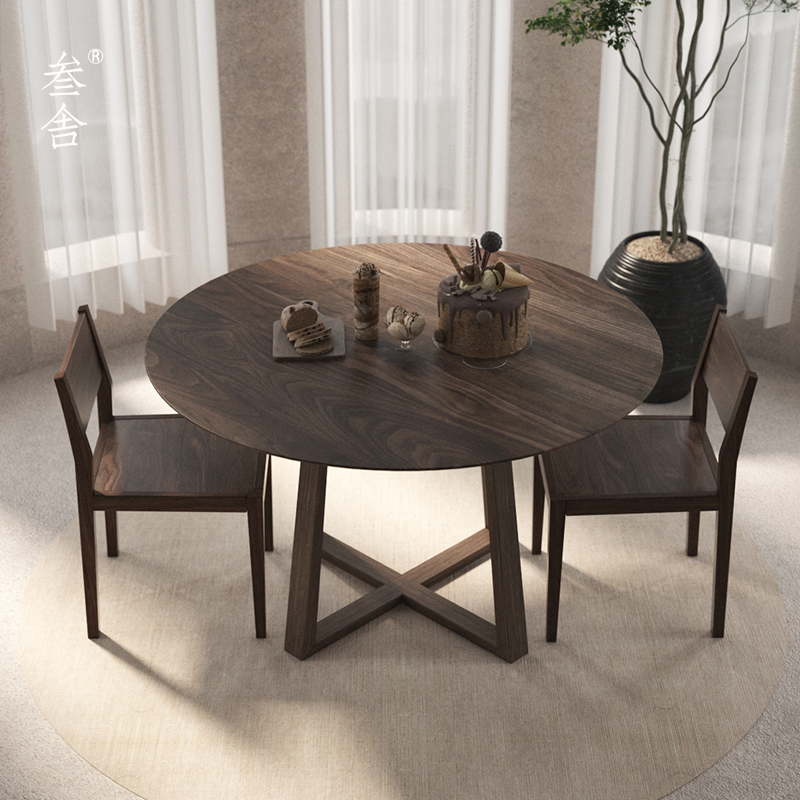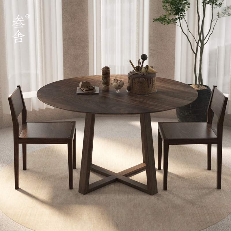 Sanshe Nordic INS dining table light luxury modern minimalist black walnut solid wood small household 1 2 meters round dining table