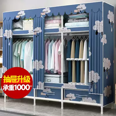 Simple cloth cabinet Household economical with drawer All-steel frame thickened and thickened storage wardrobe assembly double fabric