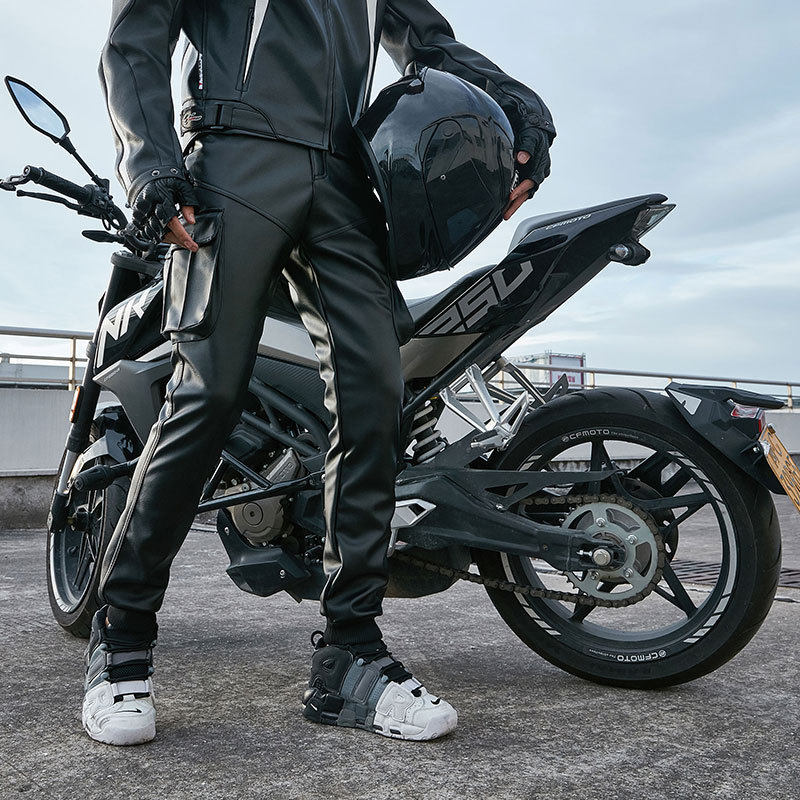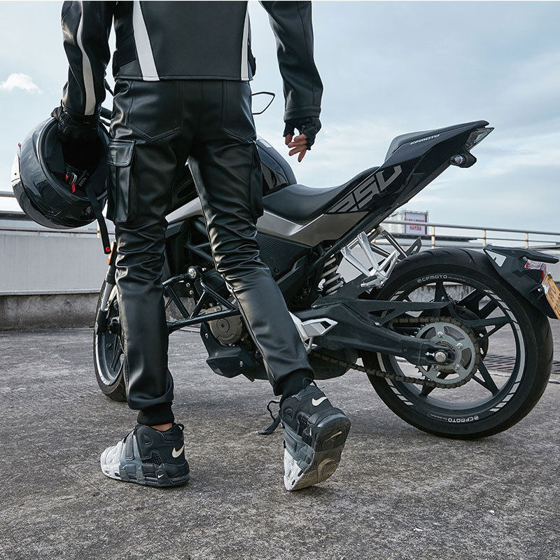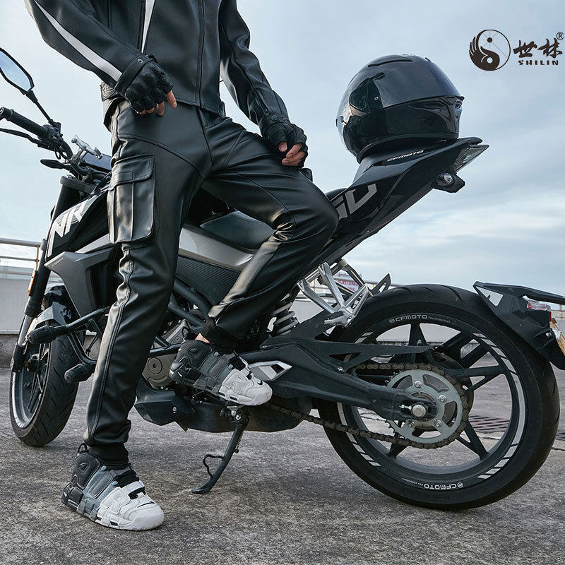 Seilin 2021 new locomotive leather pants men's business casual locomotive loose riding tooling long pants bunches of pure color