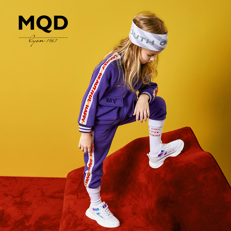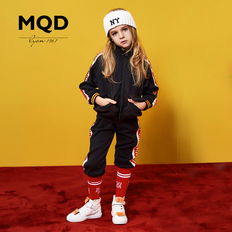 MQD children's clothing girls' suit winter new children's sports striped jacket thickened and warm two-piece tide Ole