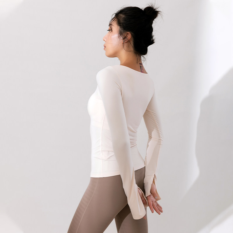 L RECNAVA yoga suit TOP WOMEN WITH CHEST pad LONG SLEEVE AUTUMN AND winter sports RUNNING tight fast-drying T-shirt fitness clothes