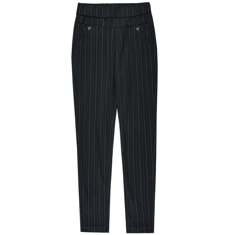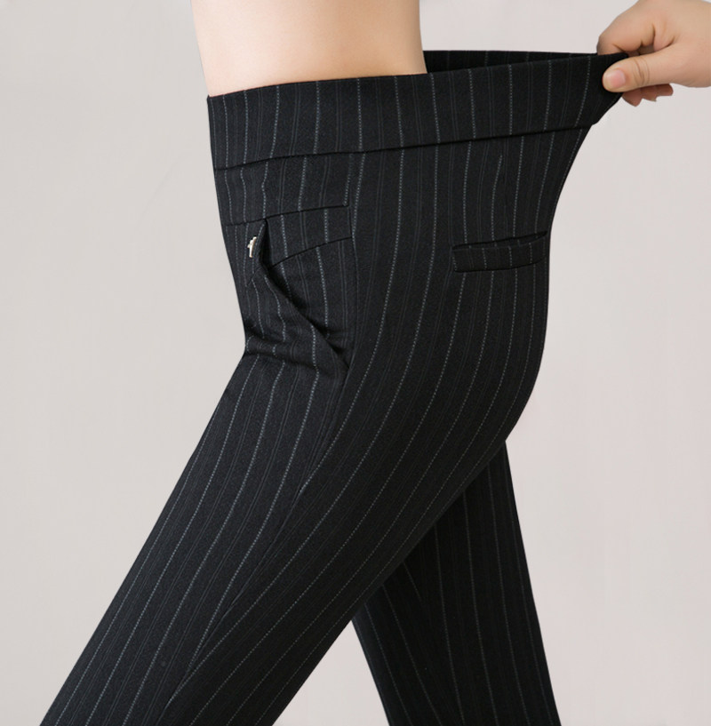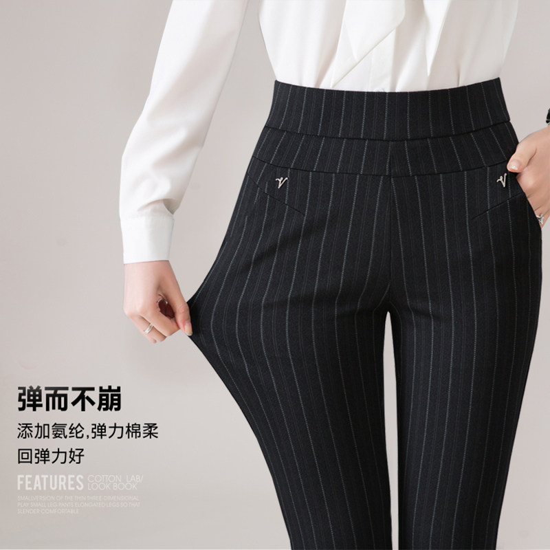 2020 new velvet thickened middle-aged women's pants striped casual pants high waist loose mom spring and autumn straight trousers