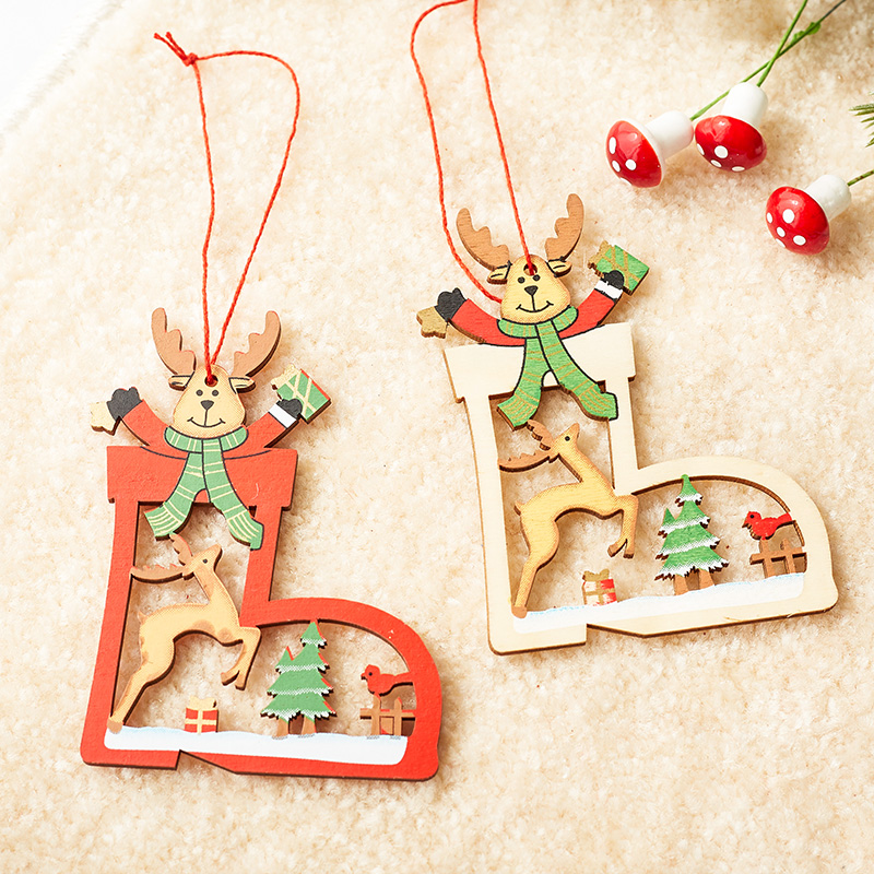 Christmas Creativity Hollowed-out Wood Hanging Accessories Hanging Accessories Seniors Elk Wood Pendants Background Arrangement Christmas Tree Decorations