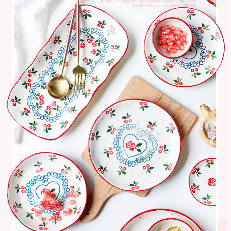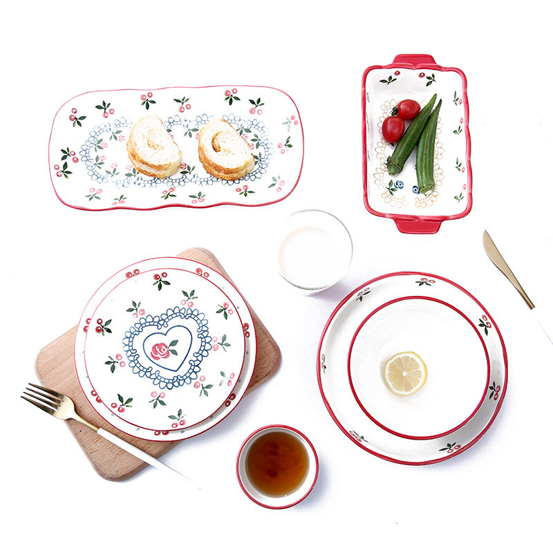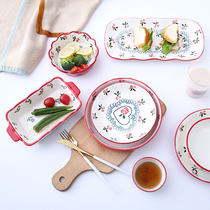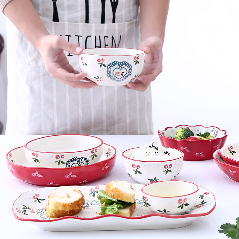 Creative baking dish hand-painted cherry bowl ceramic tableware rice bowl soup bowl western plate home plate