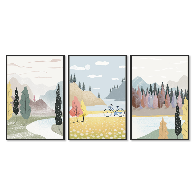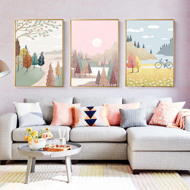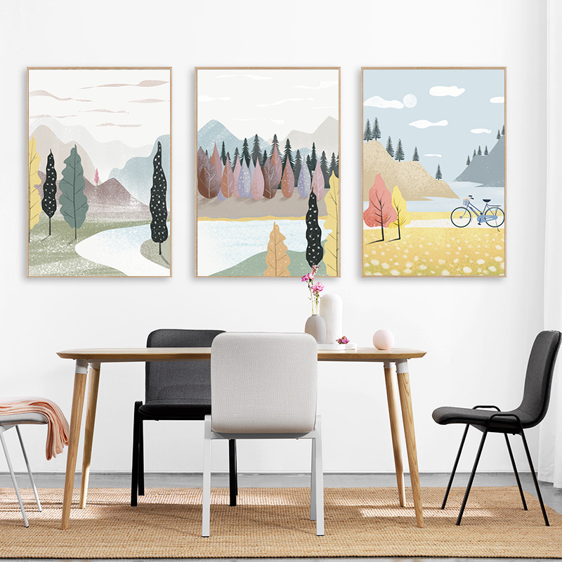 Nordic Landscape Living Room Decoration Painting Sofa Background Wall Dining Room Triptych Modern Little Fresher Bedroom Bedside Hanging Painting