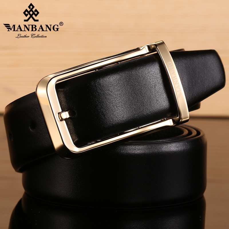 Manbang men's leather strap genuine leather pure cow leather middle-aged casual needle buckle pants with damp young man Youth business belt man-Taobao