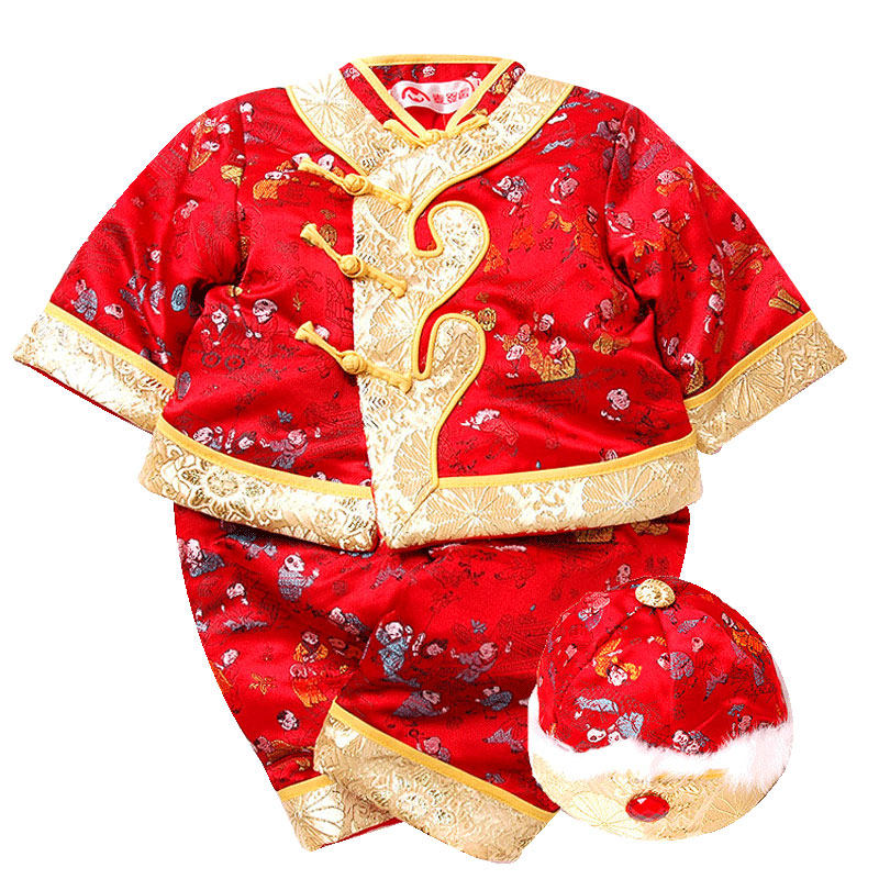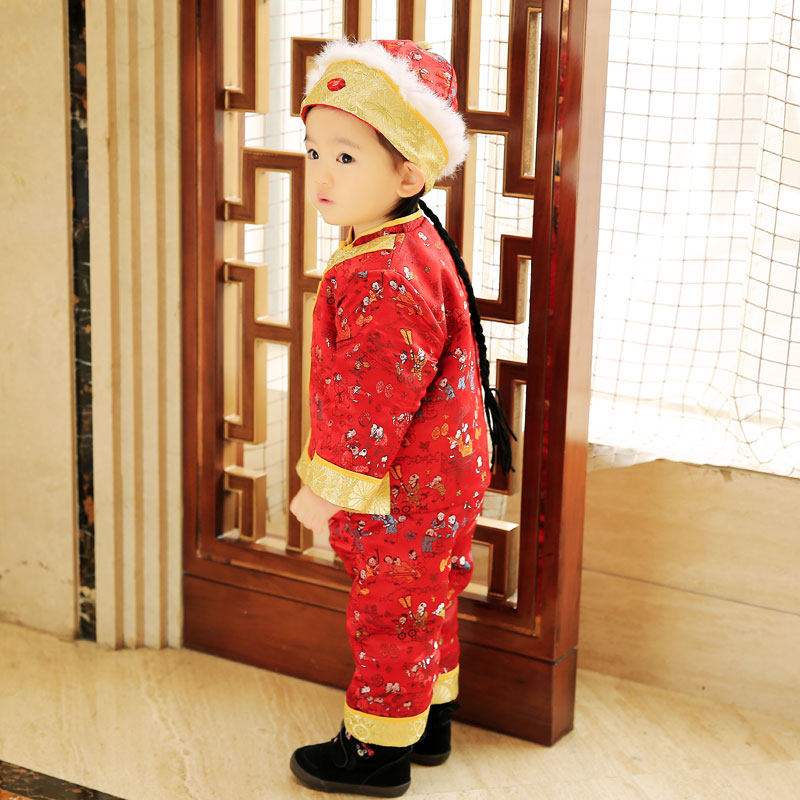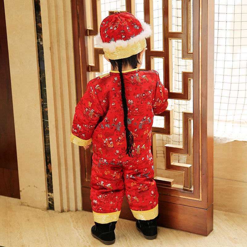 Baby-baby boy's hand child Down with boy's first year baby Beyen-fu cotton clothes suit female winter baby New Year's dress