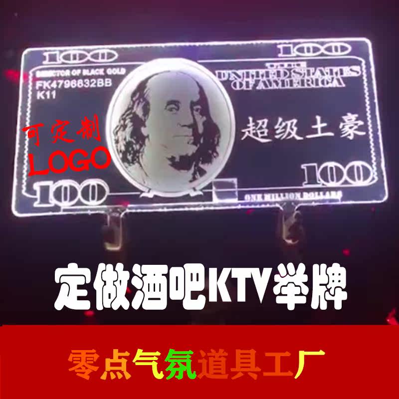 Bar glowing Super Dirt big US dollars KTV honor placard LED placard lighting hand show up wine suit