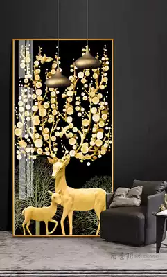 Nordic lucky elk crystal porcelain decoration hanging painting Modern simple living room corridor aisle entrance vertical framed mural