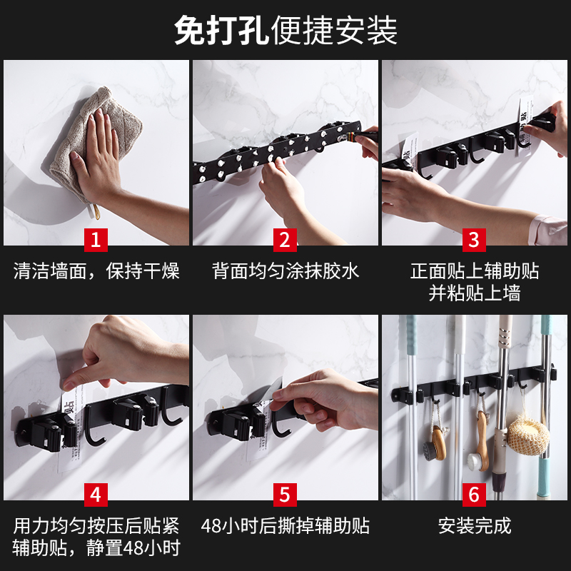 Mop hook clamp artifact free punch wall hanging wall toilet stick hook strong load-bearing mop broom fixing frame