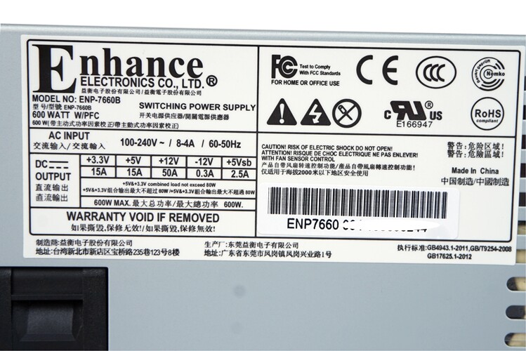 Enhance ENP-7660B Platinum 600W Wide silent small 1U power supply FLEX power supply
