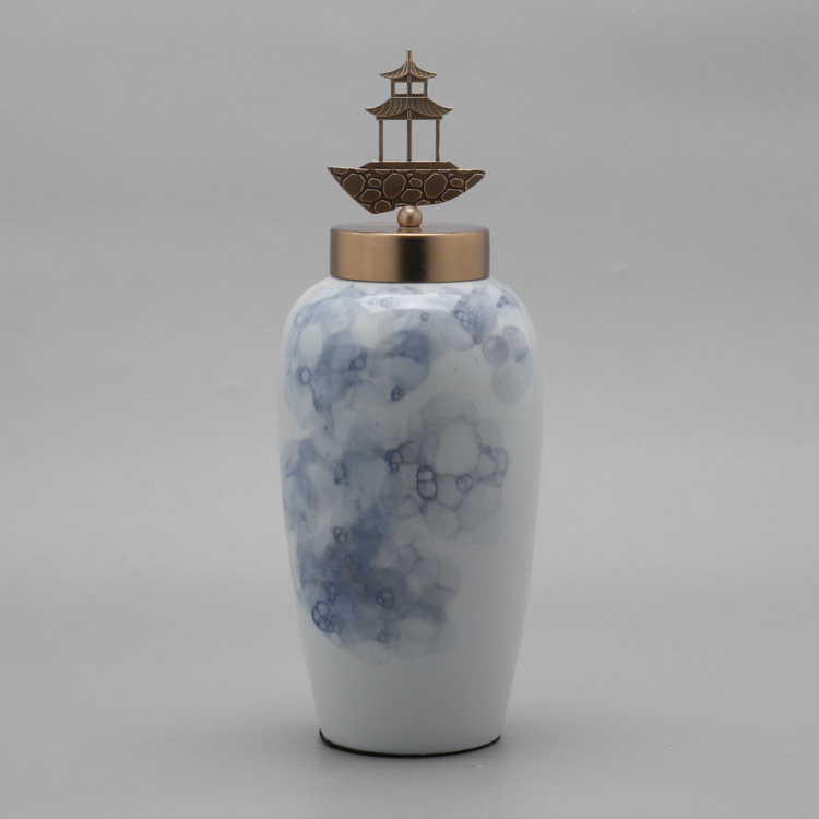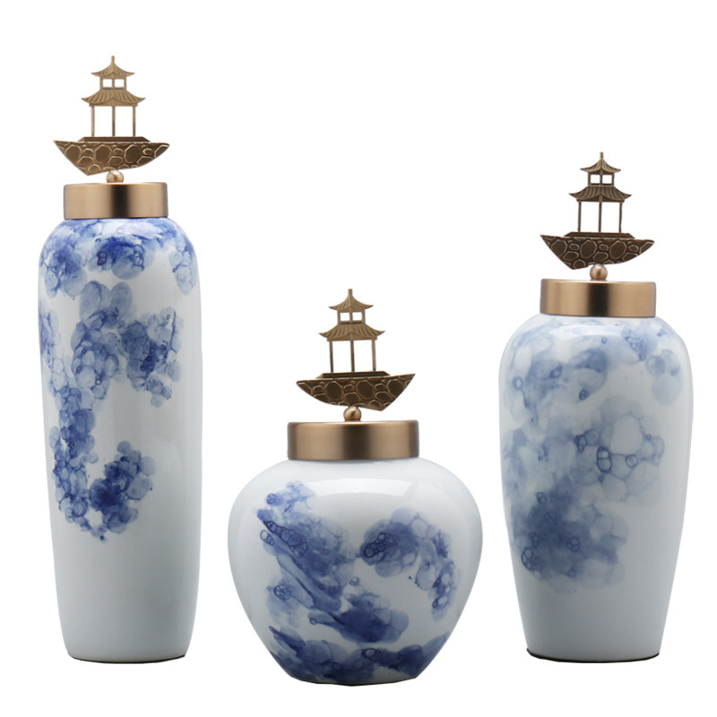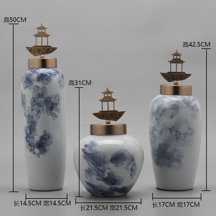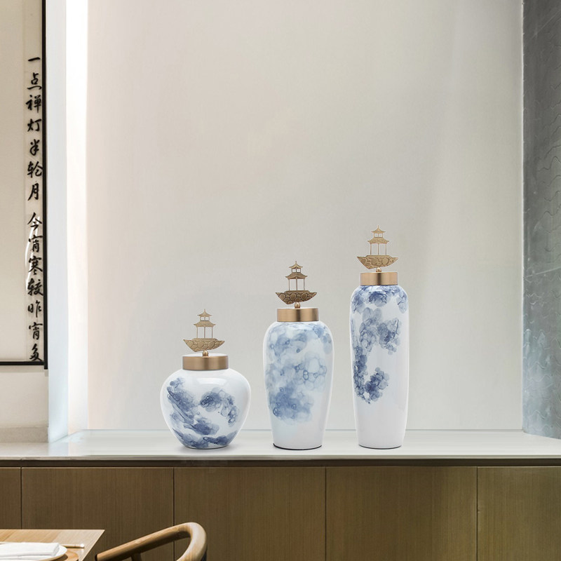 Modern new Chinese style creative ceramic storage tank three-piece set decoration Living room entrance TV cabinet Craft gift decoration