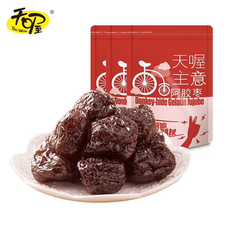 Tianwo Ejiao Honey dates 160g*3 bags of golden candied fruit leisure snacks Dried red dates Small package seedless dates red dates