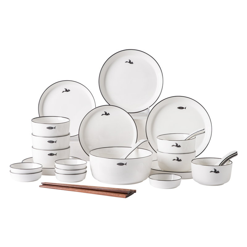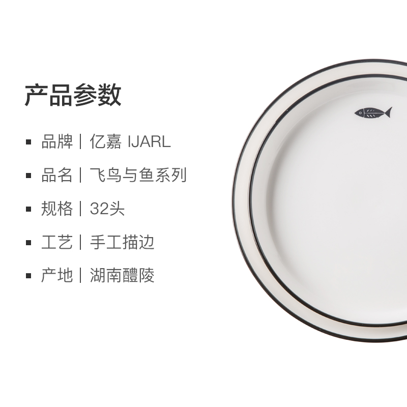 Yijia IJARL crockery set ceramic cutlery set 32 heads Nordic glaze color Bird and fish series