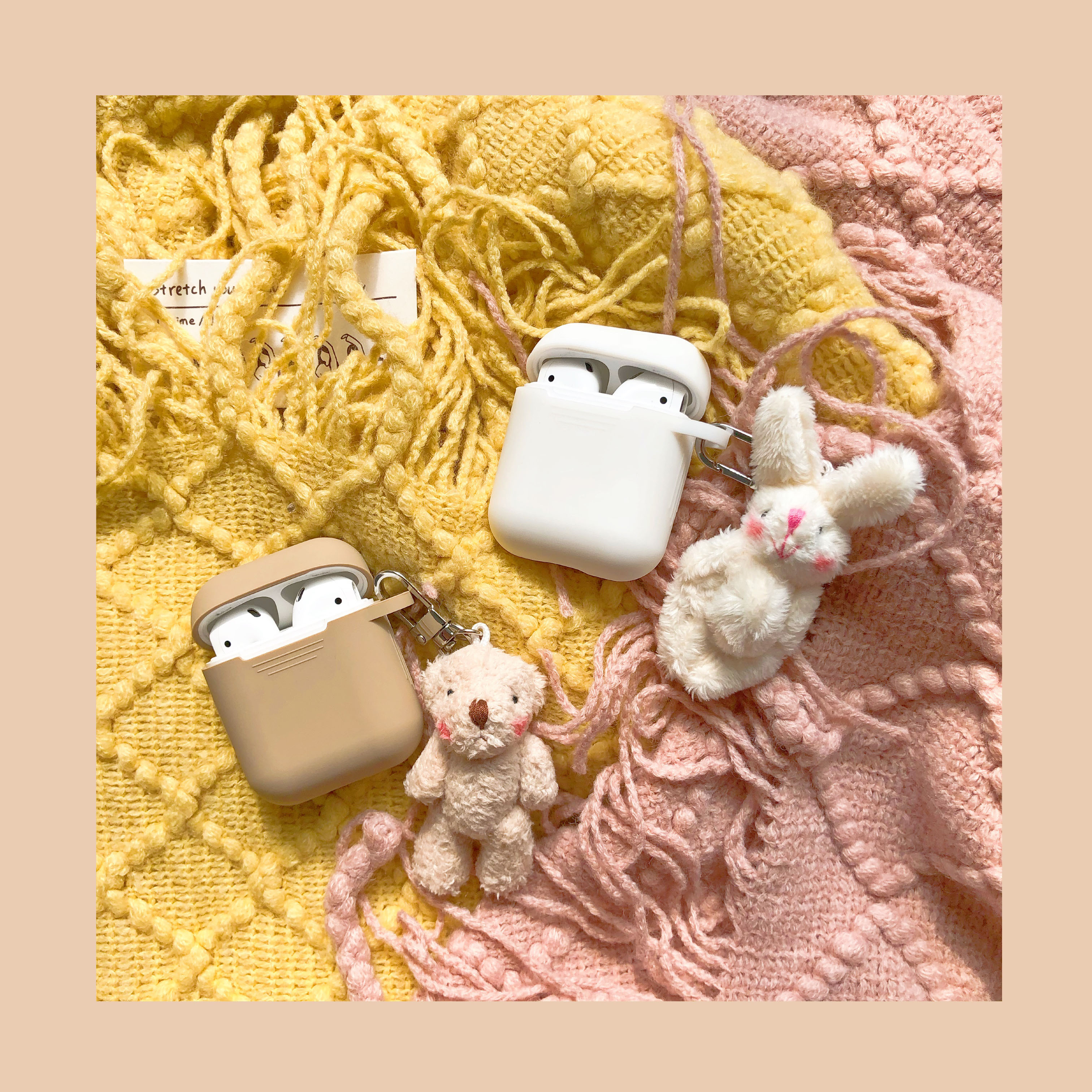 Milk tea airpods protective sleeve blush red bear beige blush small white rabbit pendant blush small pink rabbit pendant blush beige small bear pendant blush curry little bear pendant white airpods protective sheath