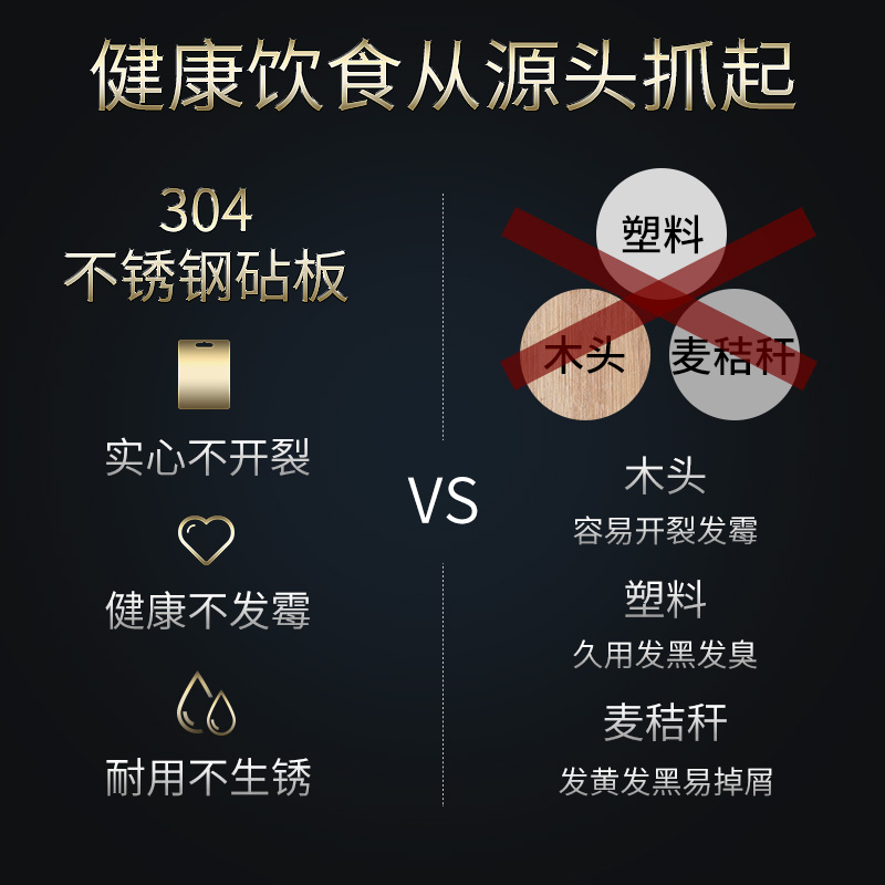 Kitchen cutting board 304 stainless steel cutting board Household antibacterial mildew and panel Rolling plate Small dorm knife chopping board