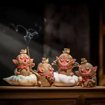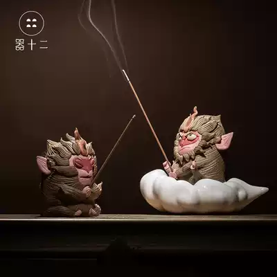Must-see colorful auspicious clouds ingot base (ceramic material)White auspicious clouds fighting sleeping Buddha small trouble Tiangong anxious as the law makes fire eyes and gold eyes stealing peaches making a scene in Tiangong fighting sleeping Buddha Colorful auspicious clouds fighting sleeping Buddha