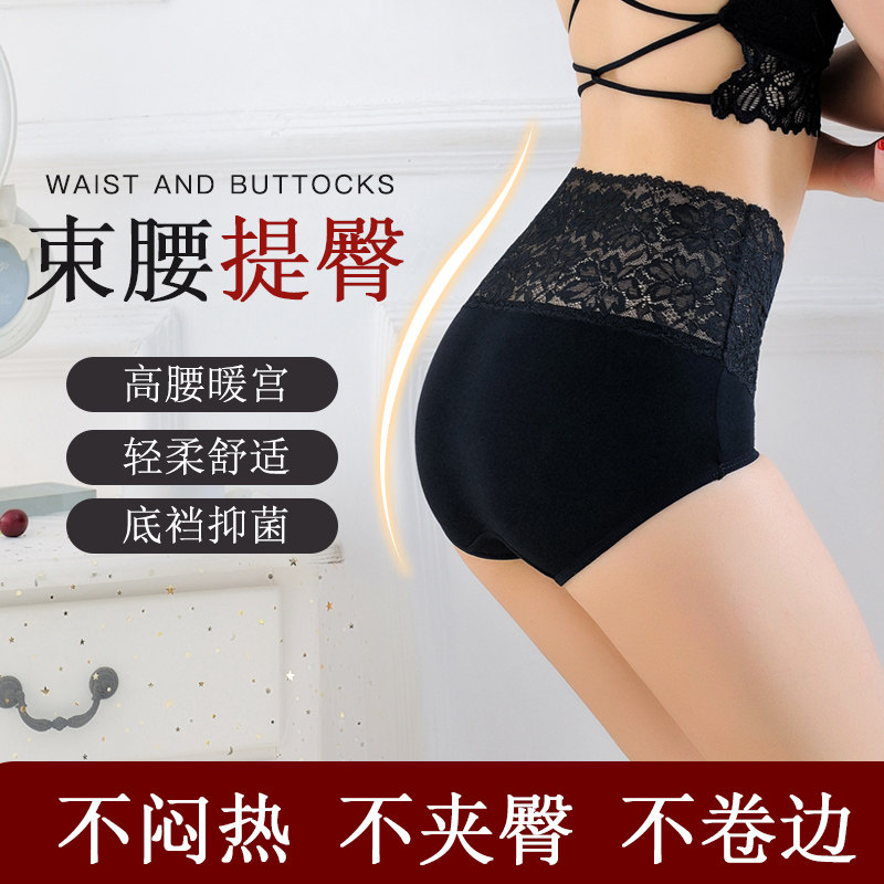 High waist lace sexy belly hips and arm underwear pure cotton-free antibacterial plastic waist warm palace flat safety pants