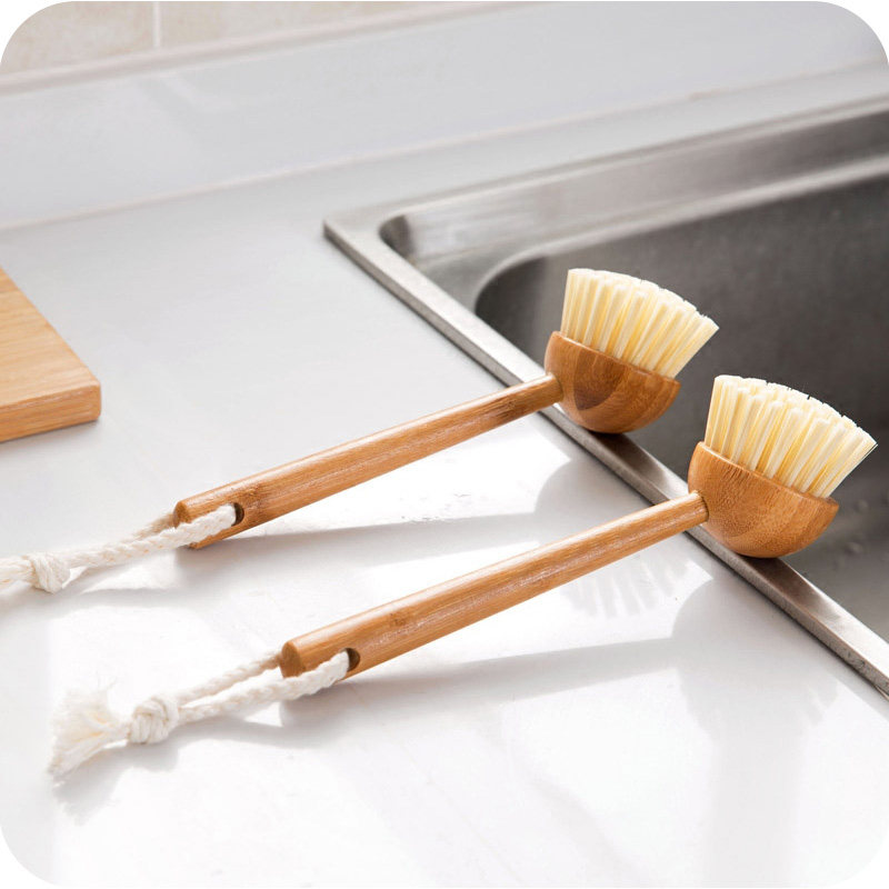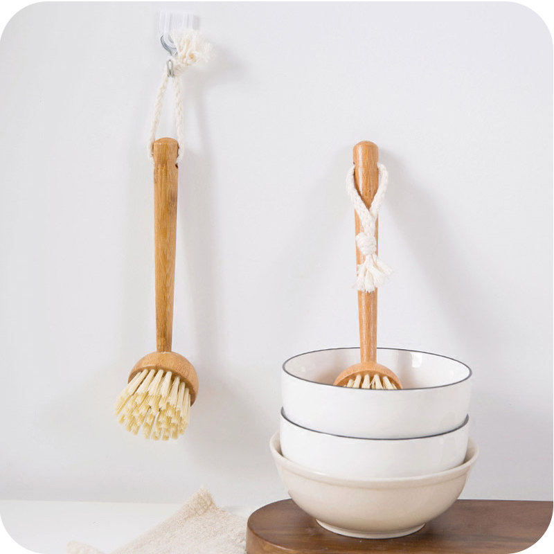 Kitchen long handle round head pot washing brush non-stick oil dish washing cleaning brush kitchen supplies household brush pot decontamination brush