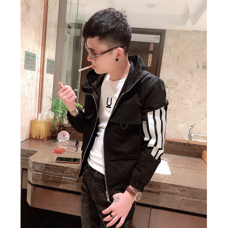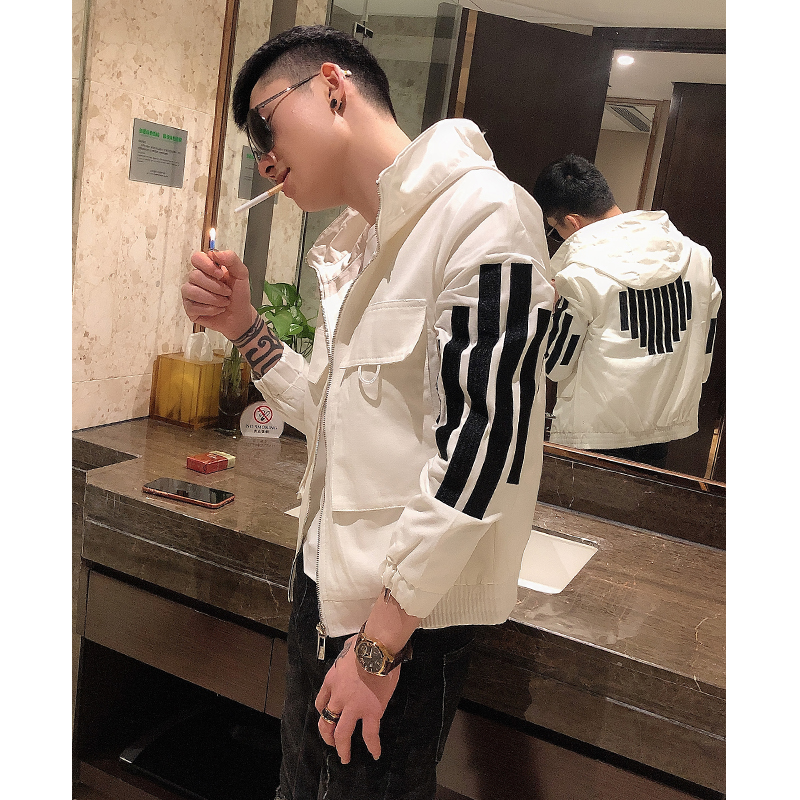 2021 New Ins Tide Men's Wear Jacket Society Youth Tandem Hat Jacket Man Spirit Little Guy White Blouse Man