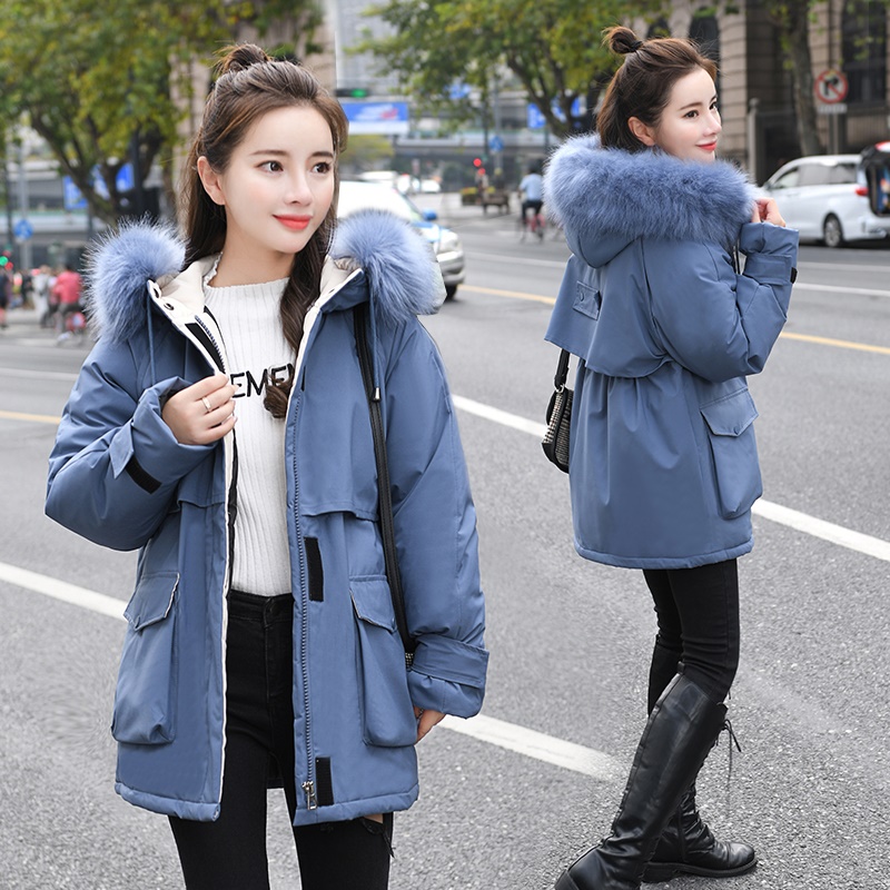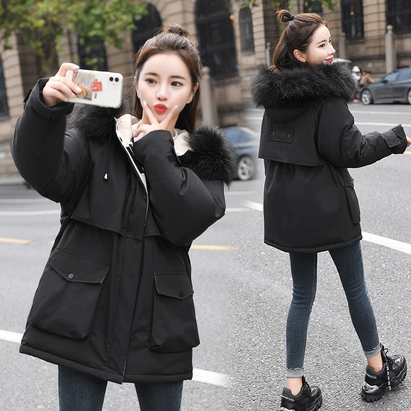 The overalls pie overcomes the women's 2021 new down cotton jacket medium long cotton coat size loose cotton jacket winter coat thick