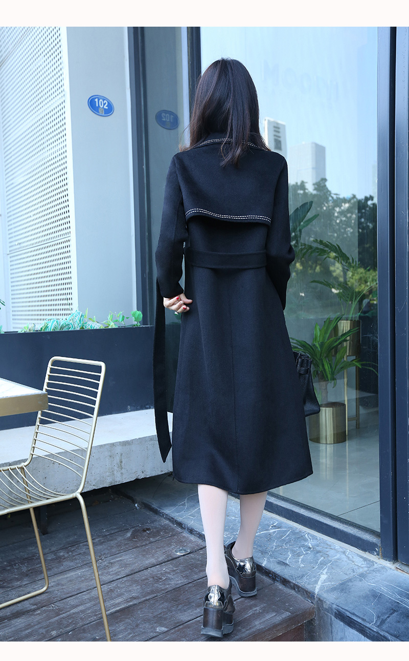 Wool - wool - wool coat woman medium - long edition double - sided 2019 autumn and winter new waist belt appears black coat