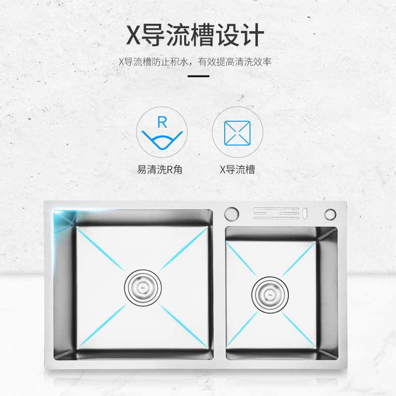 Shunta kitchen sink double sink 304 stainless steel handmade sink sink thickened sink Amoy basin
