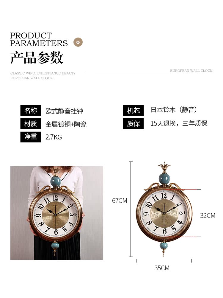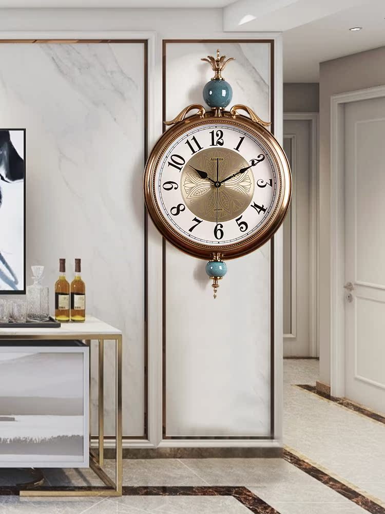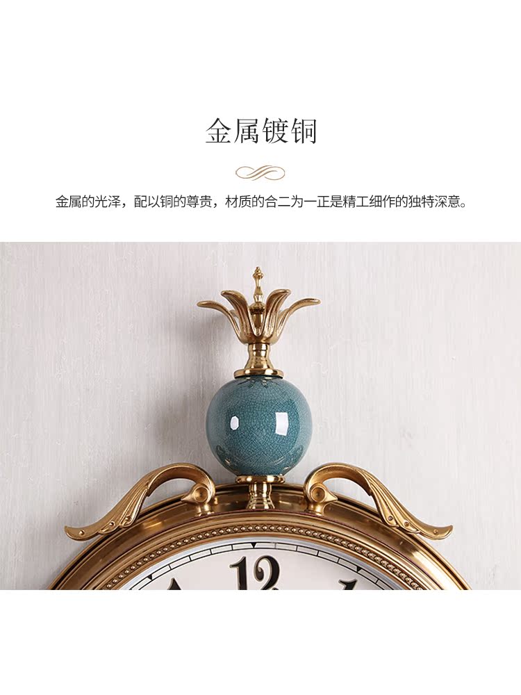 Light luxury metal ceramic clock wall clock living room home fashion creative simple atmosphere European silent personality clock