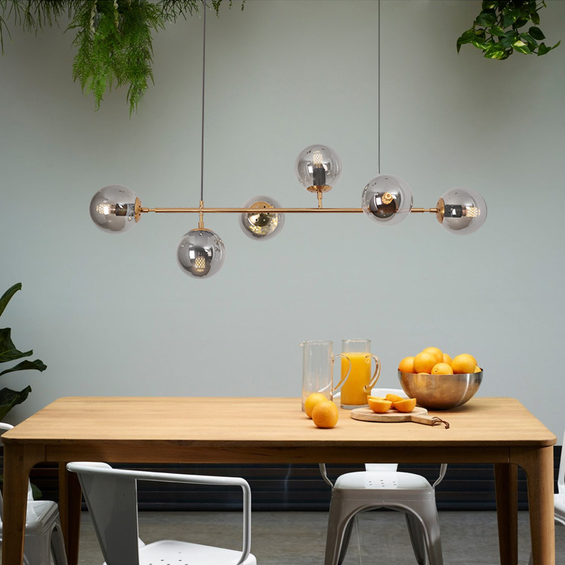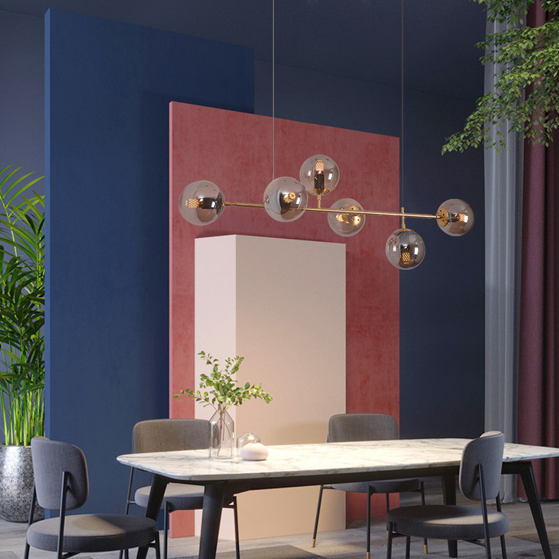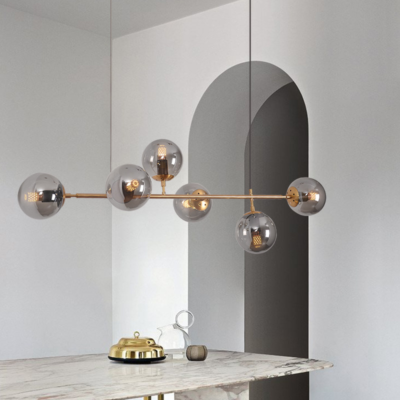 Nordic Dining Room Chandeliers Minimalist Modern Strip Round Ball Glass Magic Bean Pendant Light Bar Table Designer Lamps