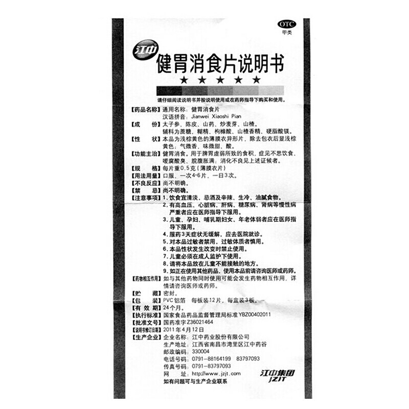 Jiangzhong Jian stomach digestion tablets (children) 0 5g*36 tablets for spleen and stomach weakness caused by food accumulation does not think about diet