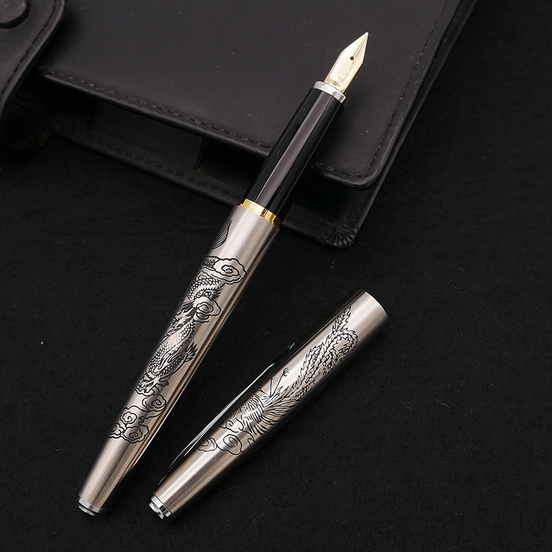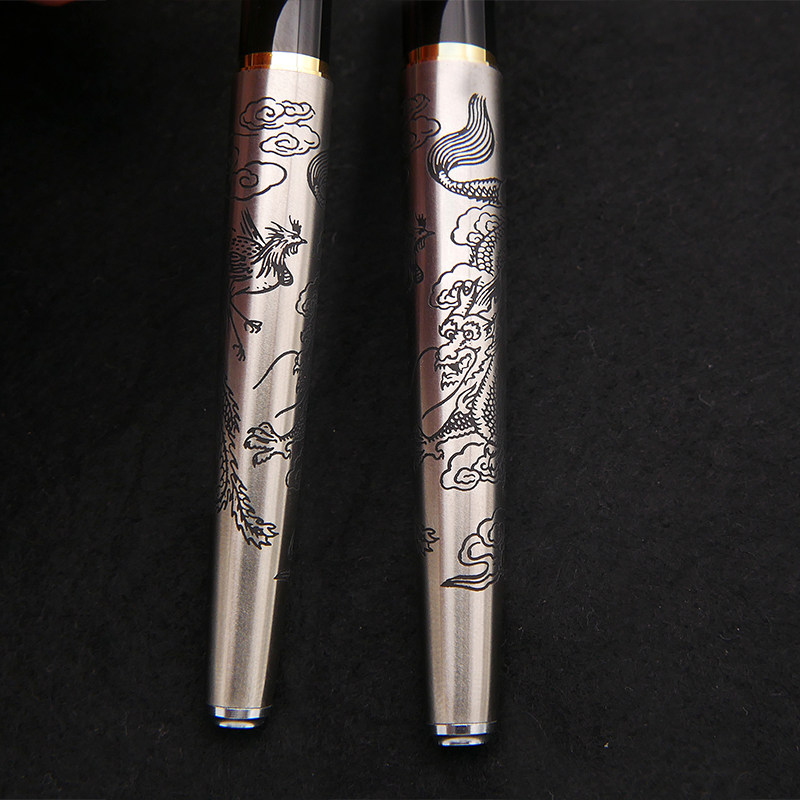 Air Japan platinum etching old pen carved beautiful 14K gold sharp pen PB-2500 dragon phoenix pen