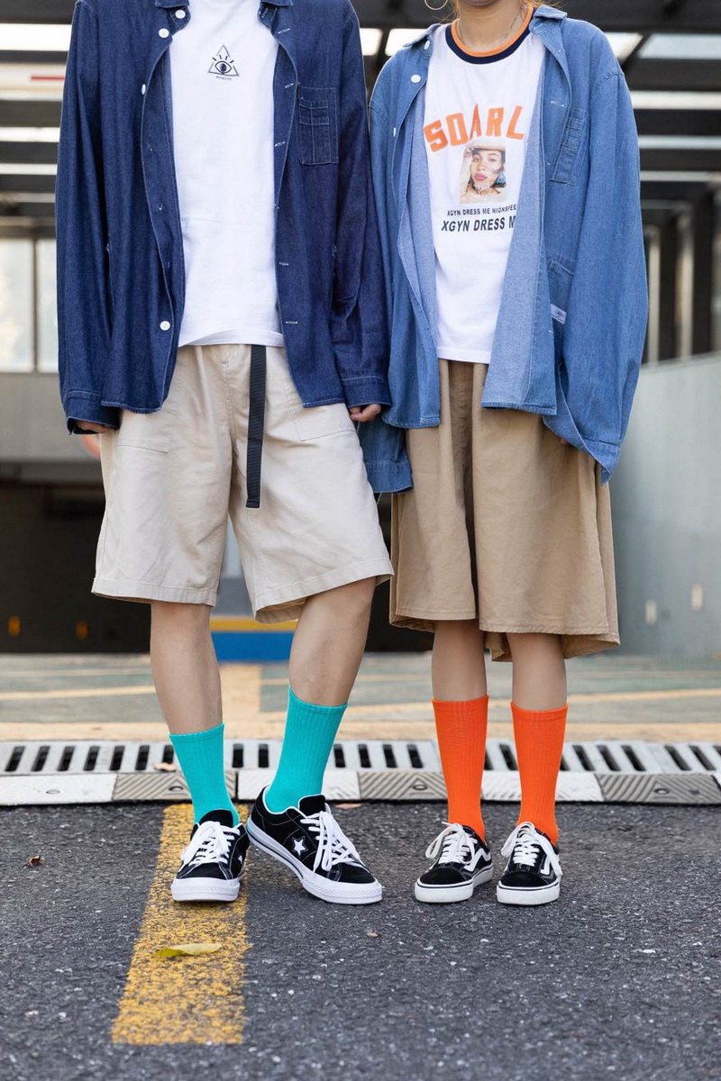 Exit Single 12 color Qihai pure original thickness elastic breathable sweat and comfortable medium cylinder cotton sock high cylinder stockings