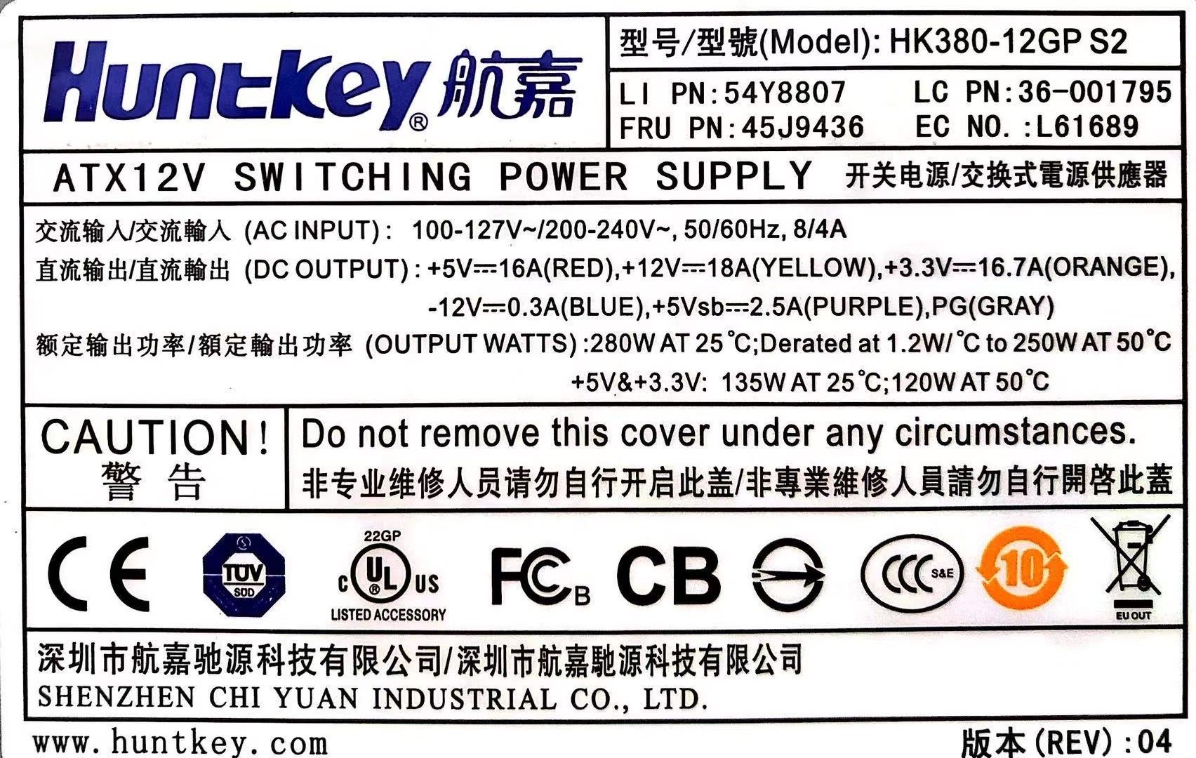 Lenovo HK380-12GP HK380-12GP PC6001 PS-5281-7vr PS-5281-7vr 280W mute desktop power supply