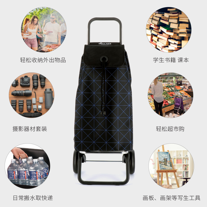 Liquick Shopping Cart Spanish Original Imported Rolser Two Wheels Passable Folding Bracelet Cart Supermarket Containing Cart 43L