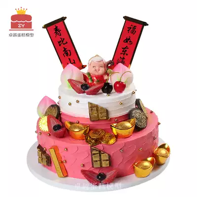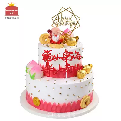 2021 new double-layer birthday cake model Shougong Shou Po birthday cake model fake cake model sample