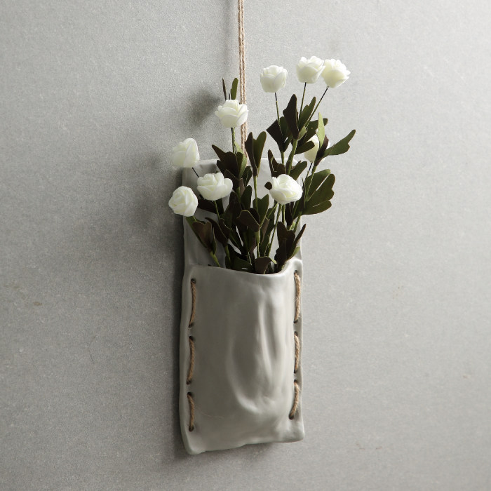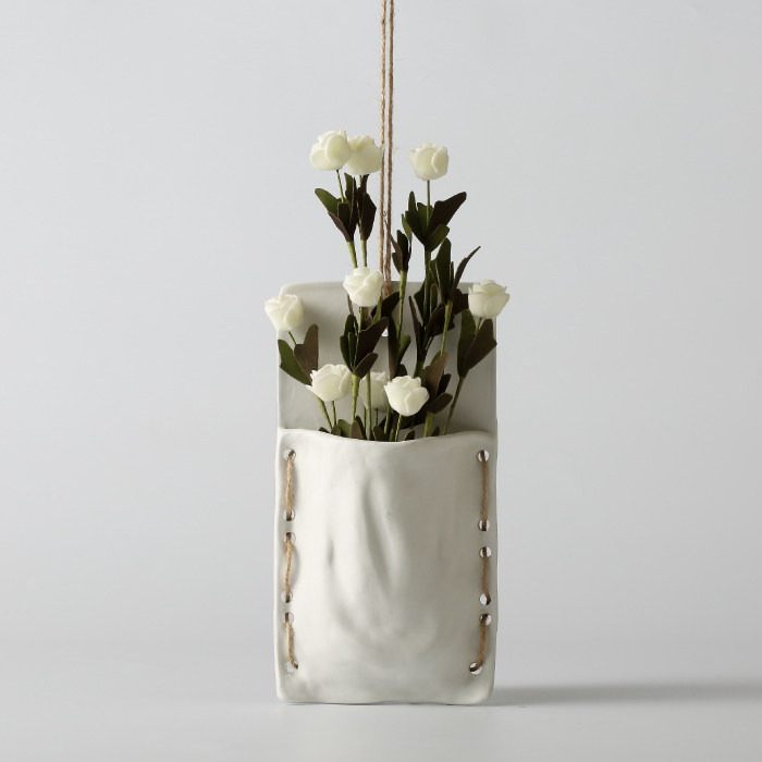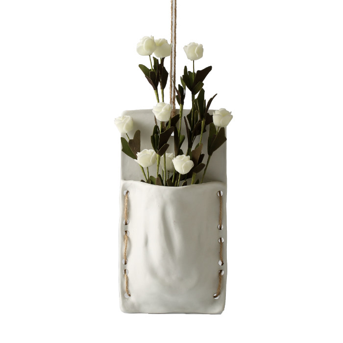 Handmade hanging hydroponic flower pot Flower arrangement Pottery bag hanging rope flower pot Wall ceramic flower pot hanging pot Wall hanging flower pot
