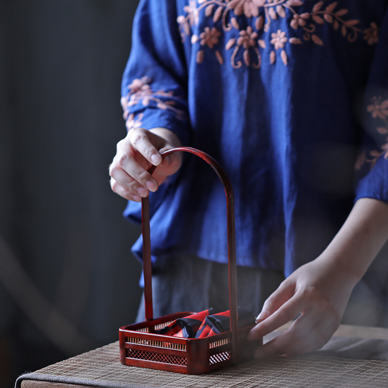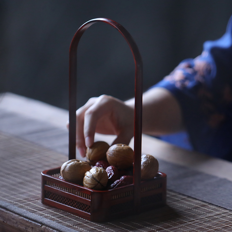 India Little Leaf Purple Sandalwood Square Rhombus High beam square basket Joe moved to Lilly Seiko Little refreshment Snack Square Basket Wooden Lift Basket