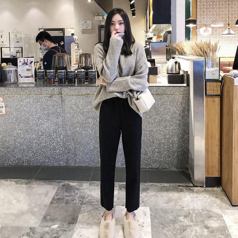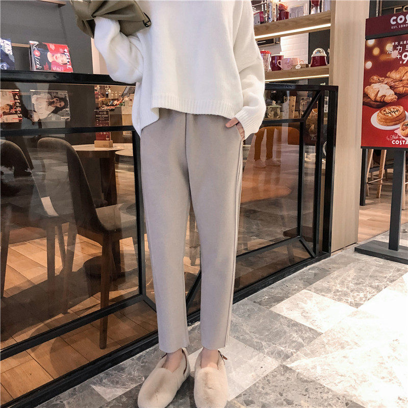 Wool Kharen Pants Woman Autumn Winter High Waist Loose Smoke Tubes Pants Robe Pants Casual Loose Straight Silo Garnter Grandma Pants
