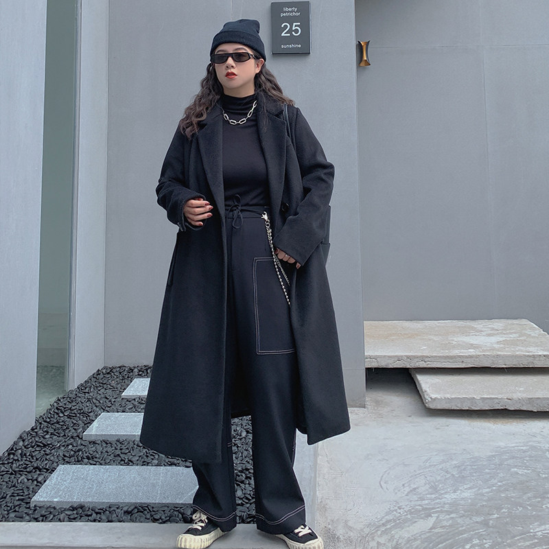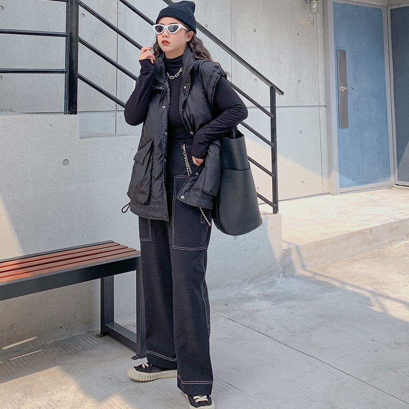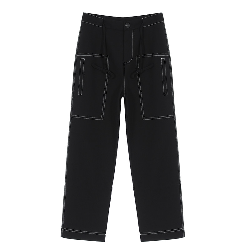 Li Xiaoxiao Fat Mm Spelled White Line Large Pocket Broadleg Pants Woman Autumn Dress Large Size Easy To Slim Fit Slim Trousers 100 Lap Casual Pants
