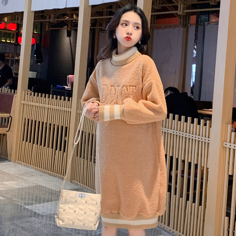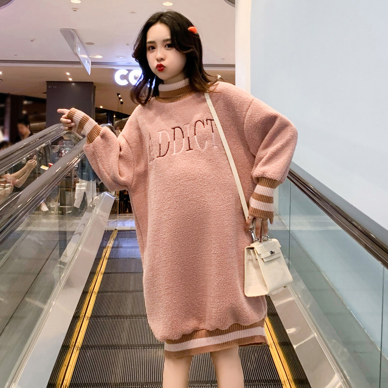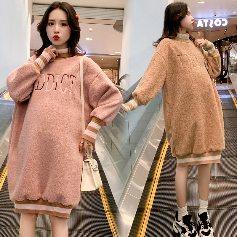 Pregnant women lamb wool sweater women's autumn and winter velvet thickened maternity fashion hot mom in the long version of the New Year's dress trend