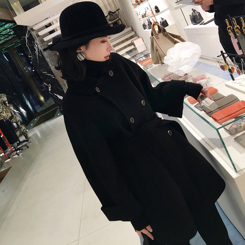 Two-sided, large coat of women Hepburn The long version of the autumn and winter a character version of the small sub-black loose cloak fur coat