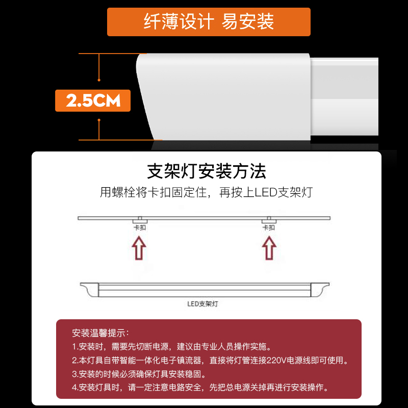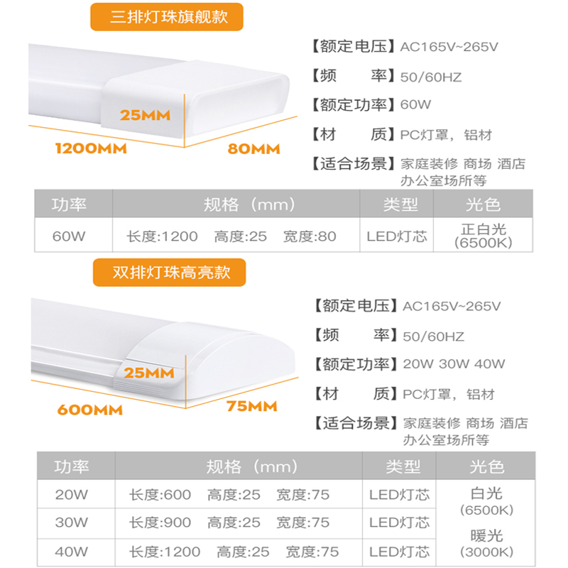 LED strip light Super bright three anti-purification lamp Full set of integrated ceiling fluorescent tube strip bracket lamp