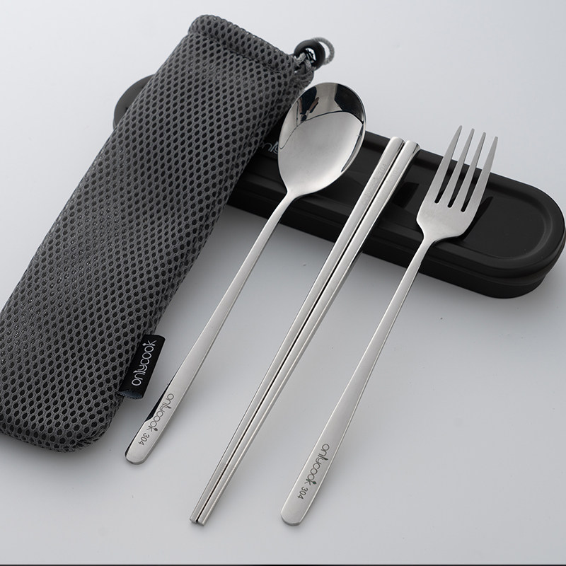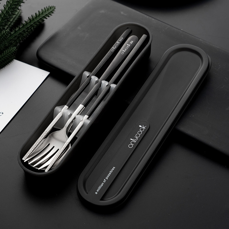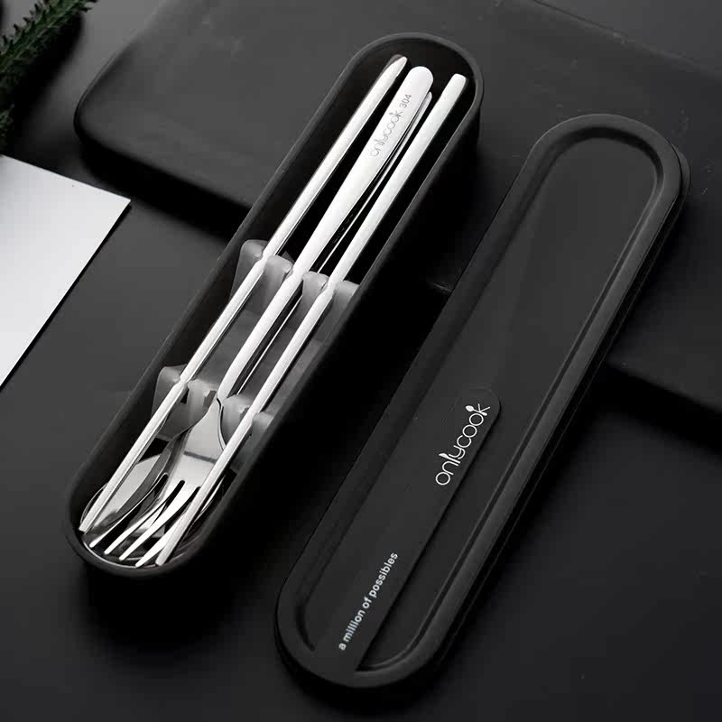 Large stainless steel handle chopsticks and spoon set of 2 portable box large stainless steel color chopsticks spoon and fork set of 3 portable box large black handle chopsticks spoon fork set of 3 portable box large black