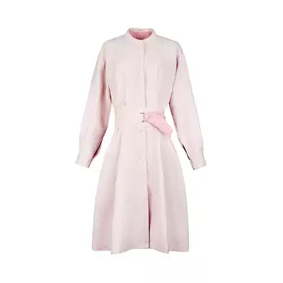 CUBIC Cobi pink round neck long sleeve single-breasted waist jacquard sweet cute lady dress
