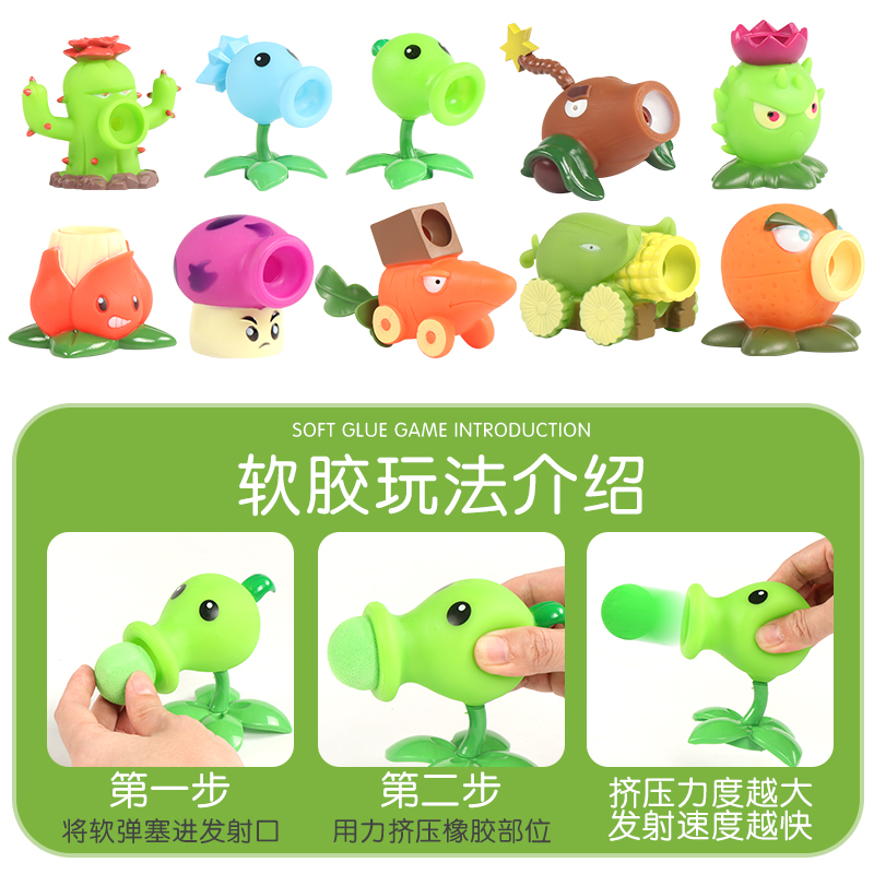 Genuine Plants vs. Zombies Toys 2 Sets Soft Glue Large Pea Shooter Ejection Dolls Children Boys 3 Years Old