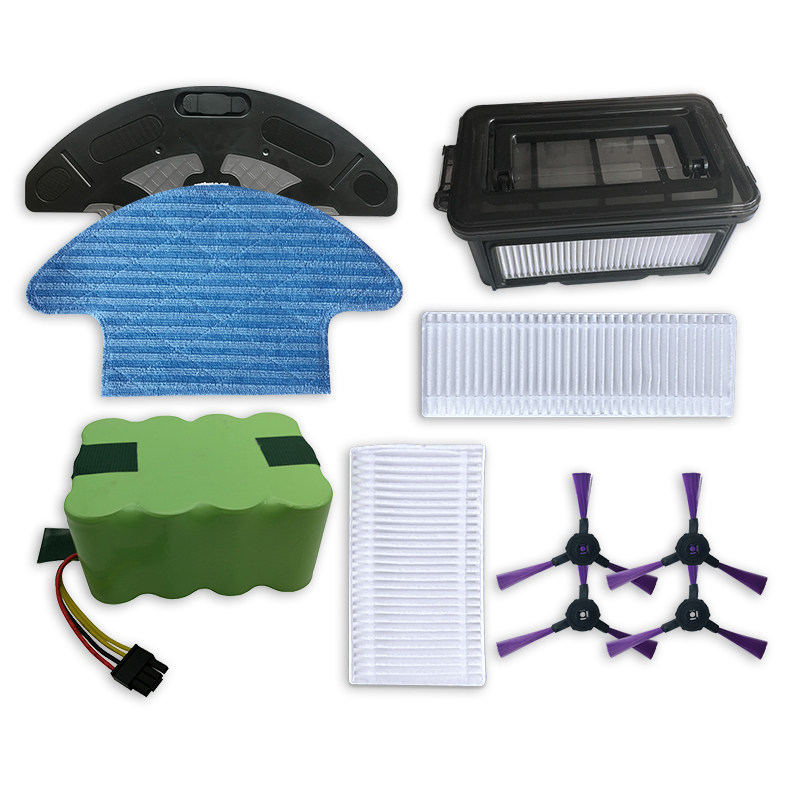 Edge brush 1 pair of sides brush 2 pairs of cloths 2 pieces Short hippa 2 blocks Long hippa 2 block water tank 1 (send to mop) Dust box 1 Power supply 1 remote control 1 battery 1 block (required